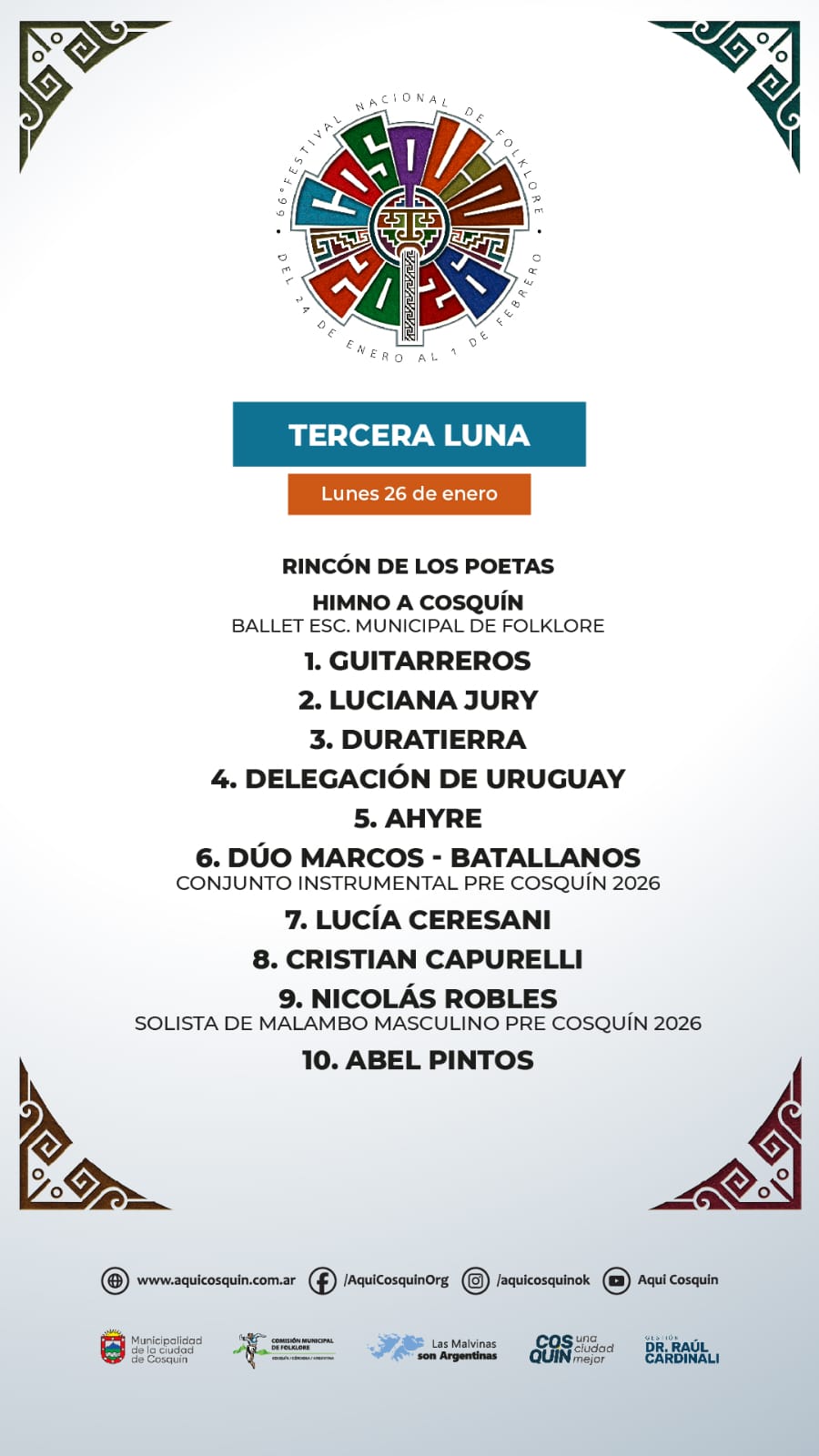 "VIDEOS COMPLETOS DE LAS 9 LUNAS DEL FESTIVAL DE COSQUÍN 2026"