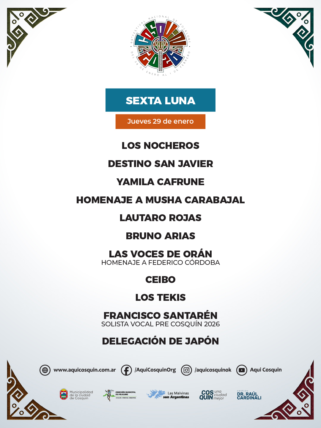 👉 Festival de Cosquín 2026: Del 24 de enero al 1 de Febrero, en vivo desde las 22:00 hs (hora Argentina).